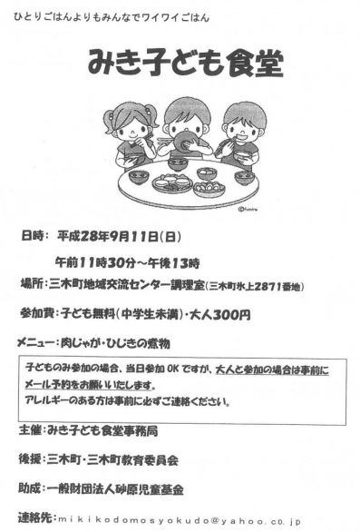 連絡先:みき子ども食堂事務局 mikikodomosyokudo@yahoo.co.jp