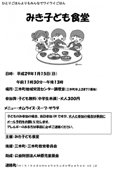連絡先:みき子ども食堂事務局 mikikodomosyokudo@yahoo.co.jp