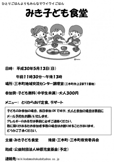 連絡先:みき子ども食堂事務局 mikikodomoshokudo@yahoo.co.jp