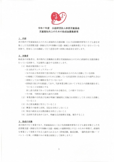 【応募受付は終了しました】令和7年度 児童福祉向上のための助成金事業申請受付開始のお知らせ