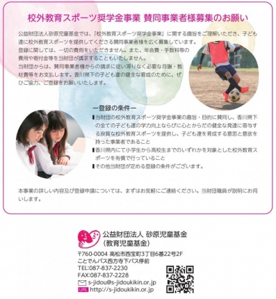 【校外教育スポーツ奨学金事業・賛同事業者様募集について】