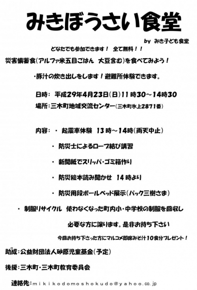 「みきぼうさい食堂 byみき子ども食堂 どなたでも参加できます!全て無料!」