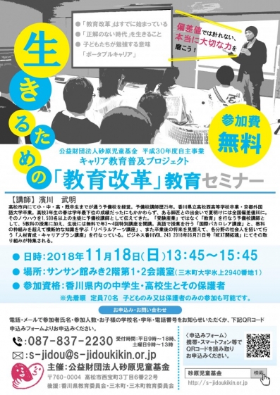 公益財団法人砂原児童基金では、自主事業として昨年度よりキャリア教育普及プロジェクト 無料セミナーを開催しています。